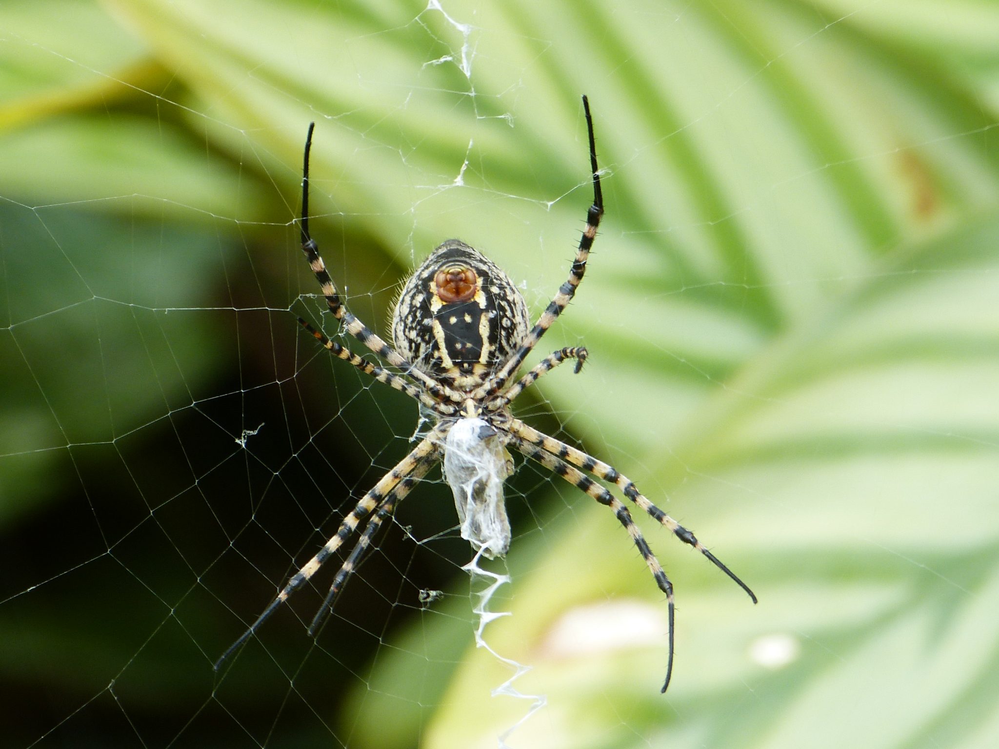 Las arañas pertenecen a la clase Arachnida y son muy inumerosas las especies que habitan la Tierra. Se caracterizan por tener 8 patas y producir seda con la que tejen las famosas telas de araña (que utilizan como refugio o para cazar a sus presas). Son depredadoras, pero no "muerden" a sus presas, sino que realizan una digestión externa. Primero paralizan a sus presas (cuando ya están atrapadas en la tela de araña). Esto lo hacen inyectando un veneno con sus quelíceros (parte del aparatu bucal). Una vez se encuentran paralizadas las presas es cuando inyectan los jugos digestivos, de manera que la digestión se hace en el exterior de la araña, pero dentro del ser capturado. Lo que hace la araña es sorber la "papilla" que resulta de esta degradación.